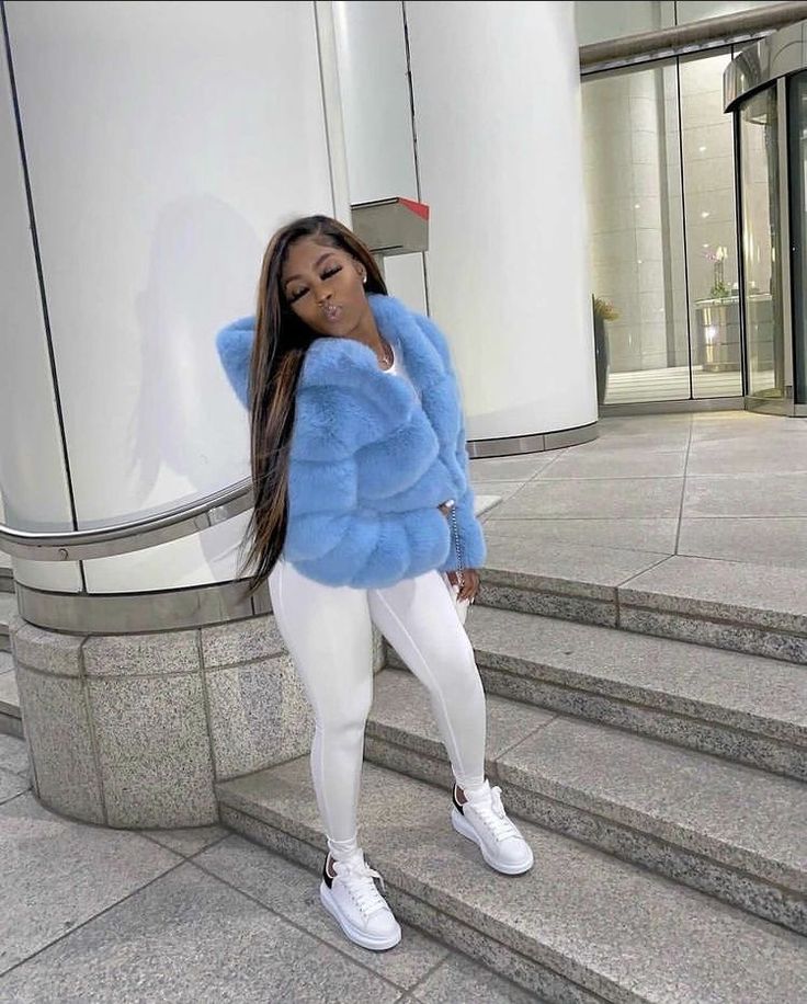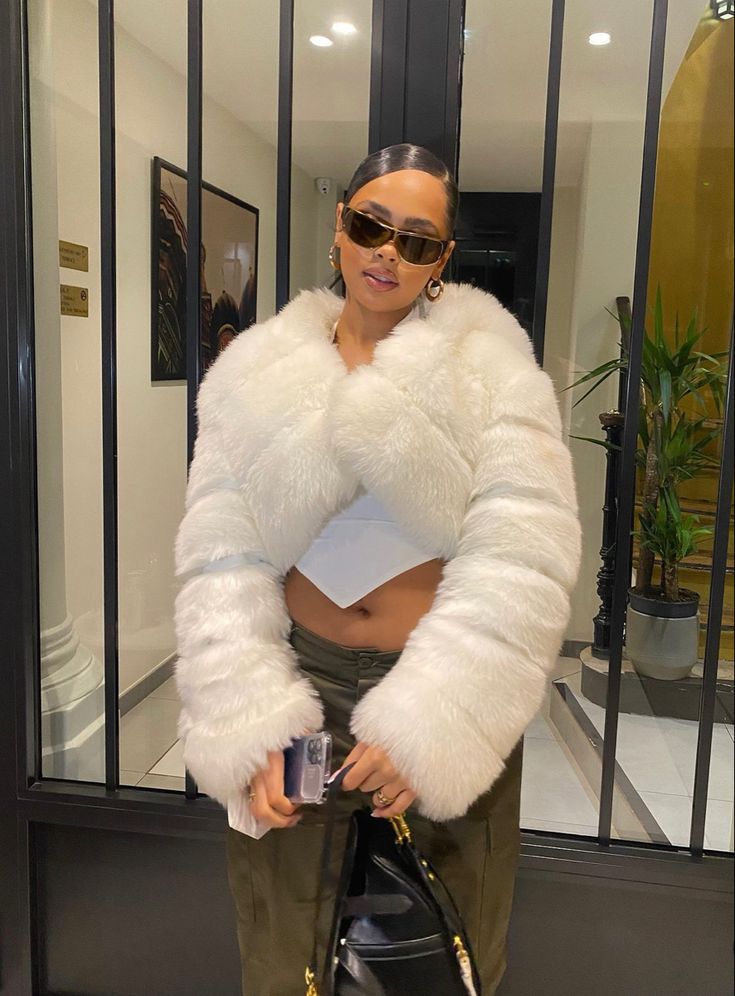 Le manteau est doté d’une capuche spacieuse qui ajoute une touche pratique et cosy, parfaite pour se protéger du vent et de la pluie légère. Les manches longues, elles aussi en fausse fourrure, assurent une isolation thermique supplémentaire tout en garantissant une grande liberté de mouvement.